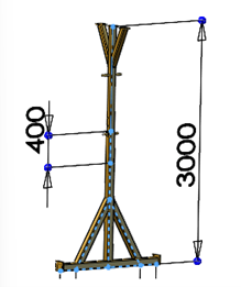 - Clique duas vezes no esboço Layout baixo na árvore de projeto do FeatureManager para exibir as dimensões de altura e sobreposição mínima da perna.