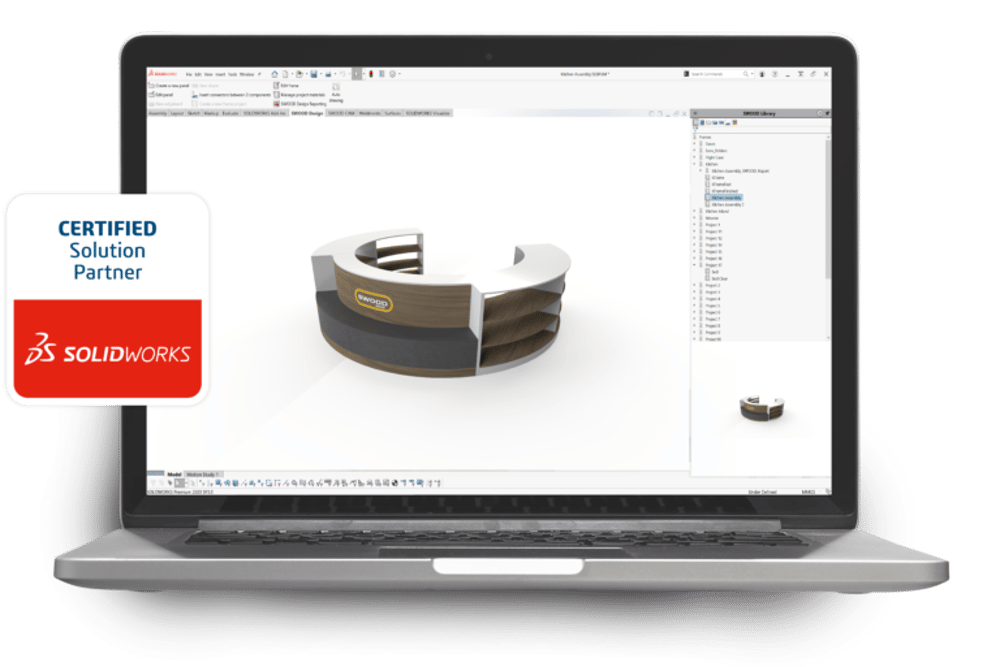 Desenvolvido pela EFICAD, referência mundial em tecnologia para fabricação de produtos em madeira, SWOOD é um software CAD/CAM para marcenarias, integrado ao SOLIDWORKS.